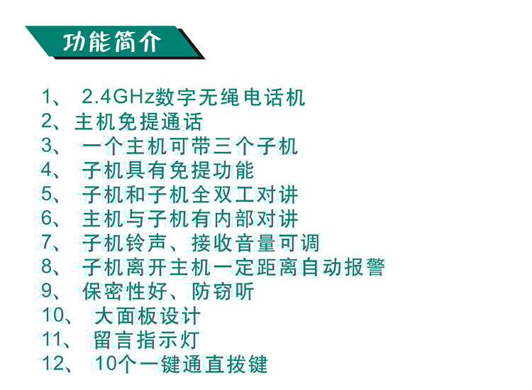 1、2.4GHz數(shù)字無繩電話機(jī)