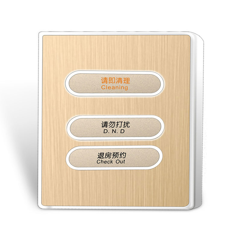 使用壽命:按鍵可達(dá)10萬(wàn)次操作; 工作功耗:強(qiáng)弱電均可做,超低功耗設(shè)計(jì),待機(jī)耗電:小于0.2W; 鋁拉絲面板,鋅合金邊框,高檔,大氣。 突出體現(xiàn)個(gè)性化酒店標(biāo)志,尊顯酒店檔次; PC阻燃絕緣材料底盒,符合國(guó)際消防標(biāo)準(zhǔn); 標(biāo)準(zhǔn)86底盒盒安裝;安裝方便、簡(jiǎn)捷; 擴(kuò)展功能:可與各大品牌客控主機(jī)匹配。