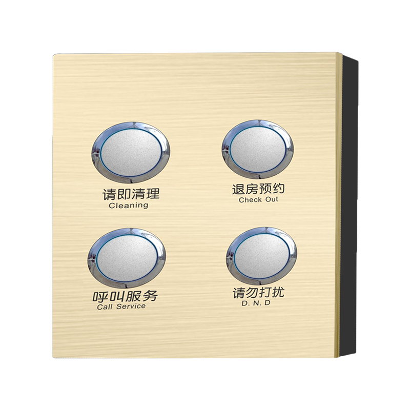 使用壽命:按鍵可達(dá)10萬次操作; 工作功耗:強(qiáng)弱電均可做,超低功耗設(shè)計(jì),待機(jī)耗電:小于0.2W; 鋁拉絲面板,鋅合金邊框,高檔,大氣。 突出體現(xiàn)個(gè)性化酒店標(biāo)志,尊顯酒店檔次; PC阻燃絕緣材料底盒,符合國際消防標(biāo)準(zhǔn); 標(biāo)準(zhǔn)86底盒盒安裝;安裝方便、簡捷; 擴(kuò)展功能:可與各大品牌客控主機(jī)匹配。