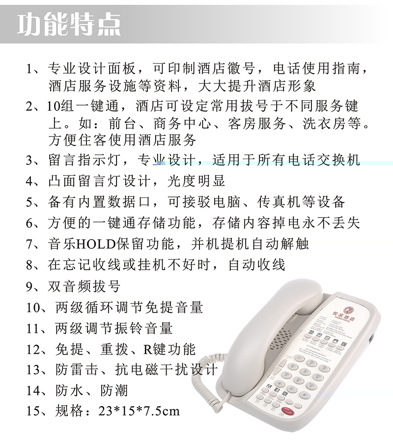 1、專業(yè)設(shè)計(jì)面板,可印制酒店徽號,電話使用指南,酒店服務(wù)設(shè)施等資料,大大提升酒店形象